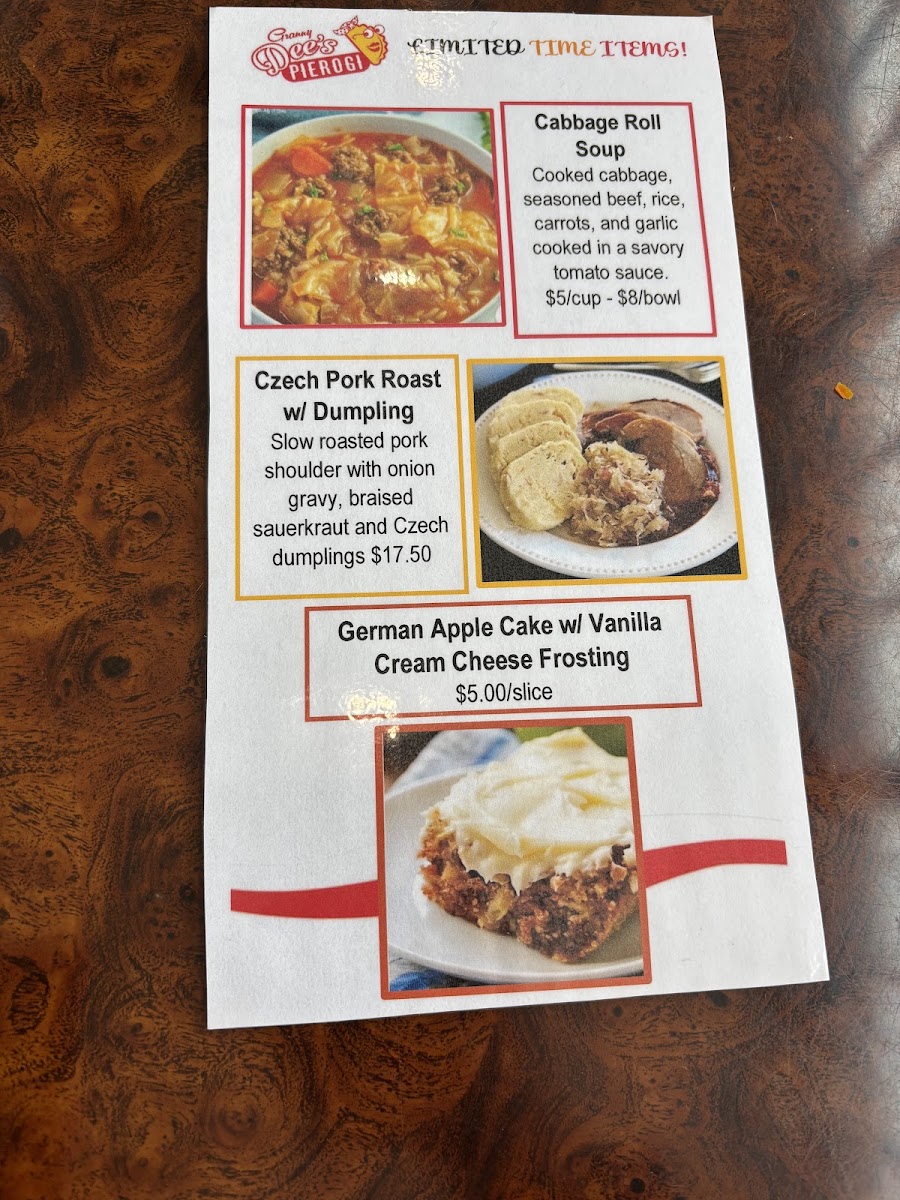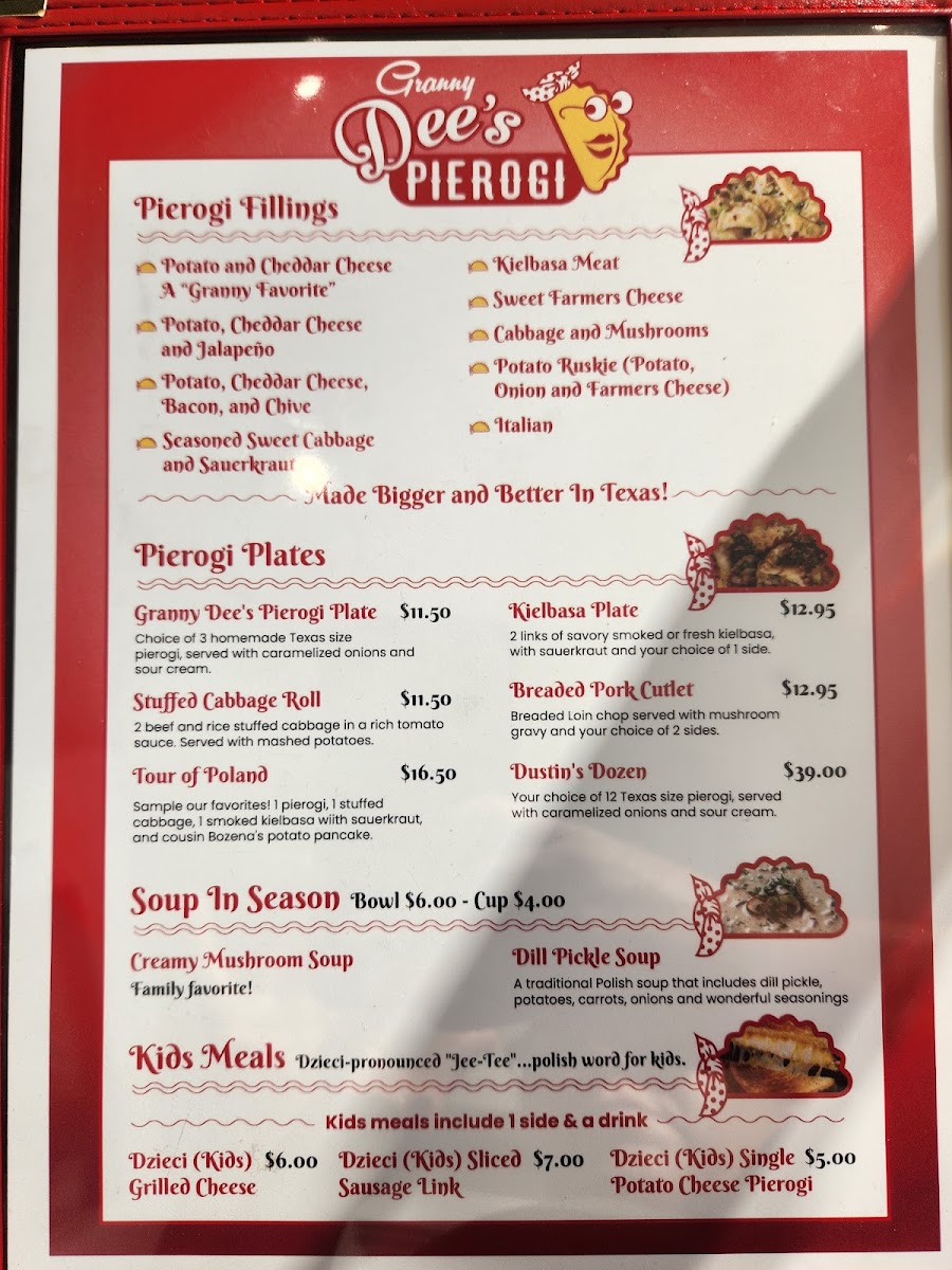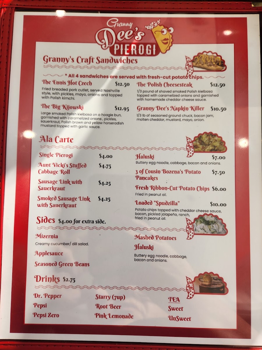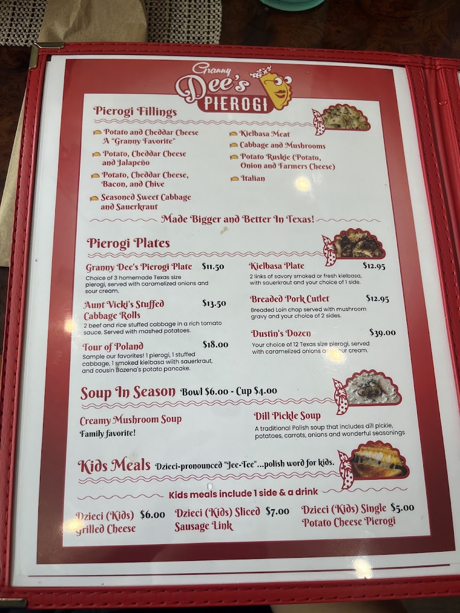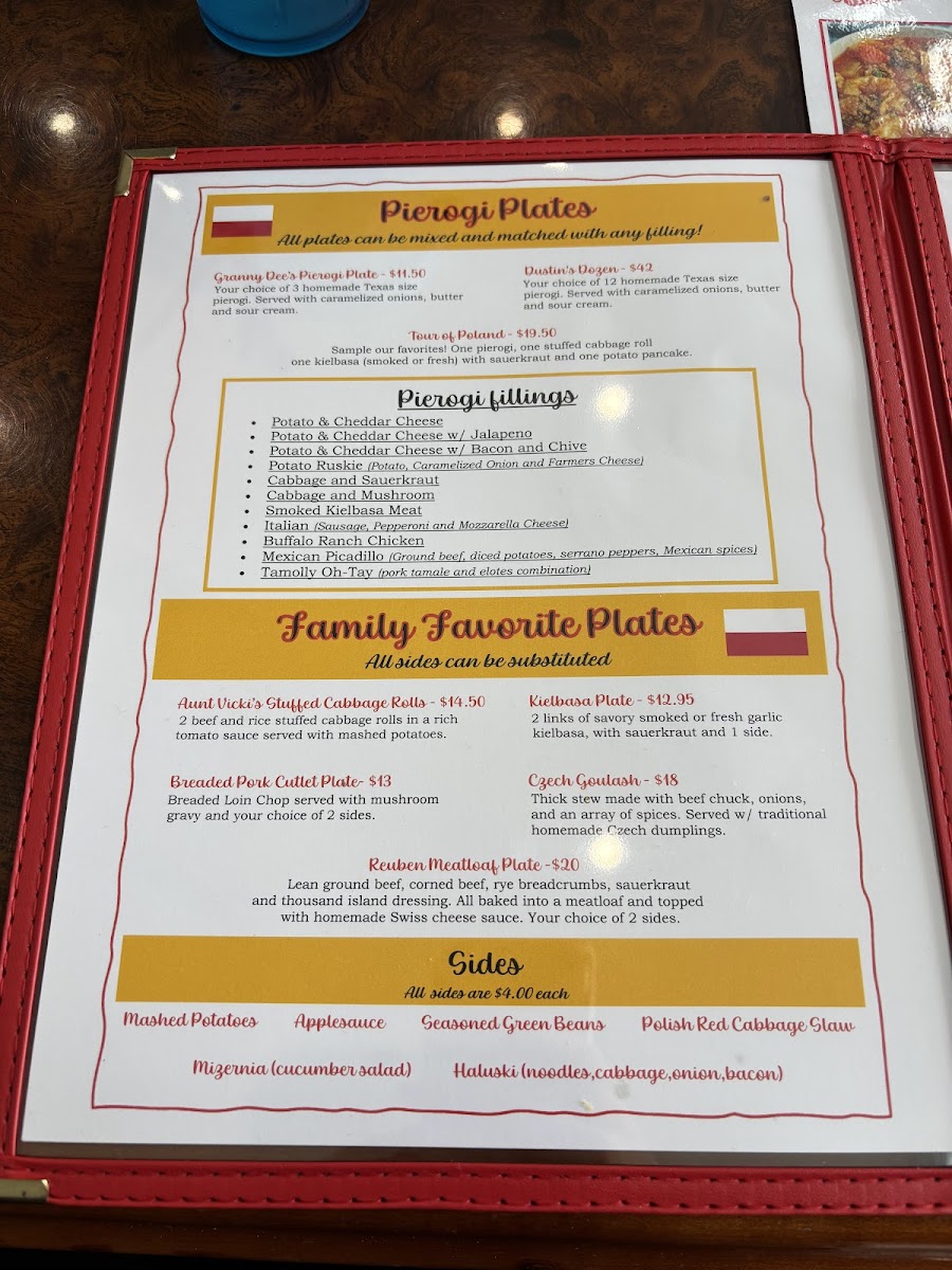 From a reviewer’s perspective, the menu at Granny Dee's Pierogi offers a warm, satisfying conclusion to any exploration of Polish and Eastern European comfort food in Ennis, Texas. The selection feels thoughtfully curated, balancing hearty plates, creative sandwiches, nostalgic soups, and family-friendly options. Signature plates like Aunt Vickie’s Stuffed Cabbage (Golabki) Plate, Dustin’s Dozen, Goulash And Czech Dumplings, Granny Dee’s Pierogi Plate, and Tour Of Poland showcase the restaurant’s commitment to tradition, delivering generous portions that highlight slow-cooked flavors and homestyle techniques.